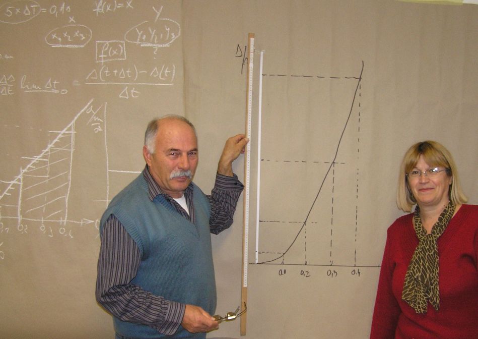The students are then given the difficult task of drawing a v-t graph based on the s-t graph. At the same time, they are rarely given guidance on how to do it. The algorithm for the procedure is as follows: First, we literally transfer the time axis to the v-t graph because we see the change in speed at the same time. Then, along the s-t graph curve, we mark the legs of the pseudo right triangle for each unit of time. The vertical leg represents the distance traveled in that unit of time, while the horizontal leg represents that time. Then we divide the vertical by the horizontal leg and record the result in the v-t graph. (Figure 2. right)