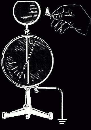 elektroskopu koji se zbog toga neutralizira. Prema tomu se i ovim