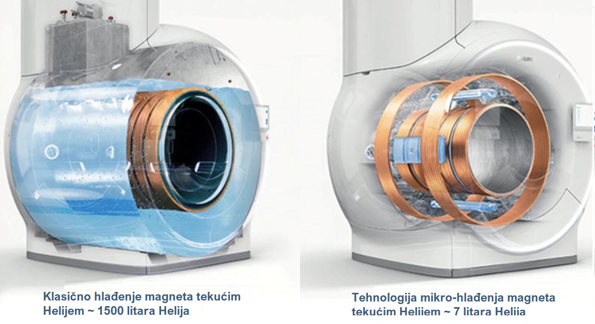 Kako bi se eliminirala ovisnost o heliju, uveden je novi način hlađenja — supervodljive zavojnice koje okružuju magnete. Posebno razvijen kruti superhladni bakar visoke čistoće, nanosi se na površinu ovih zavojnica i izolira vakuumskom tehnologijom. Kada se aktivira, može hladiti zavojnice do -269 °C, što je dovoljno za rad MRI sustava. Ova tehnologija smanjuje troškove održavanja uklanjanjem potrebe za tekućim helijem i poboljšava kvalitetu slike, koja može biti narušena nestabilnim temperaturama tekućeg helija.