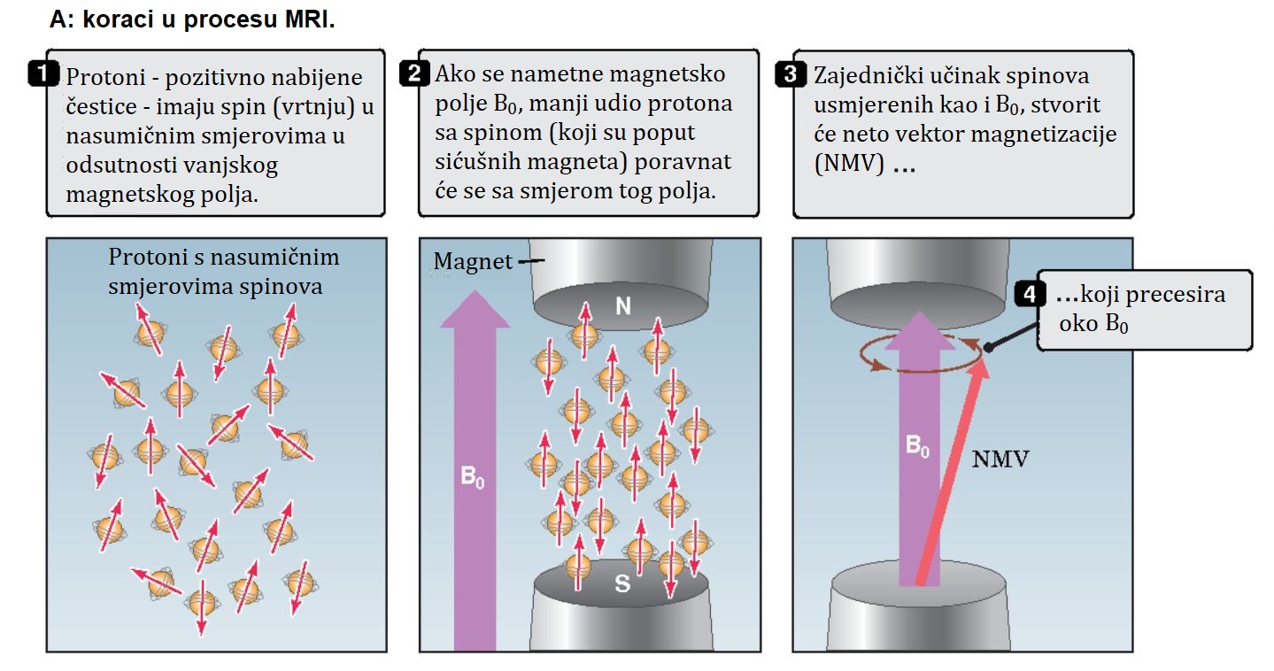 Uređaj odašilje kratki radiofrekvencijski (RF) impuls koji „udari“ protone i izbaci ih iz ravnoteže. No, da bi taj "udarac" uopće djelovao, frekvencija radiovala mora biti pogođena u milimetar. Tu nastupa ključna fizika: