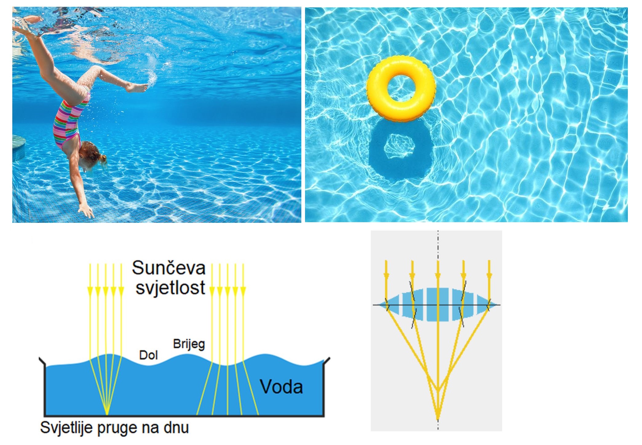 Kad sunce sja, ponekad se na dnu bazena pojavljuju svijetli uzorci. Imamo li fizičko objašnjenje za ovo?