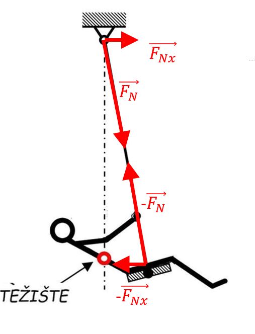 Zbog te izmjene količine gibanja s ovjesištem, horizontalne komponente sila napetosti niti su velike. Odmah vidimo i razlog zbog kojeg se ljuljačke izrađuju sa koso raširenim nosivim stupovima koji sprječavaju prevrtanje.